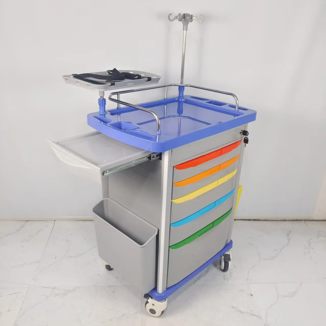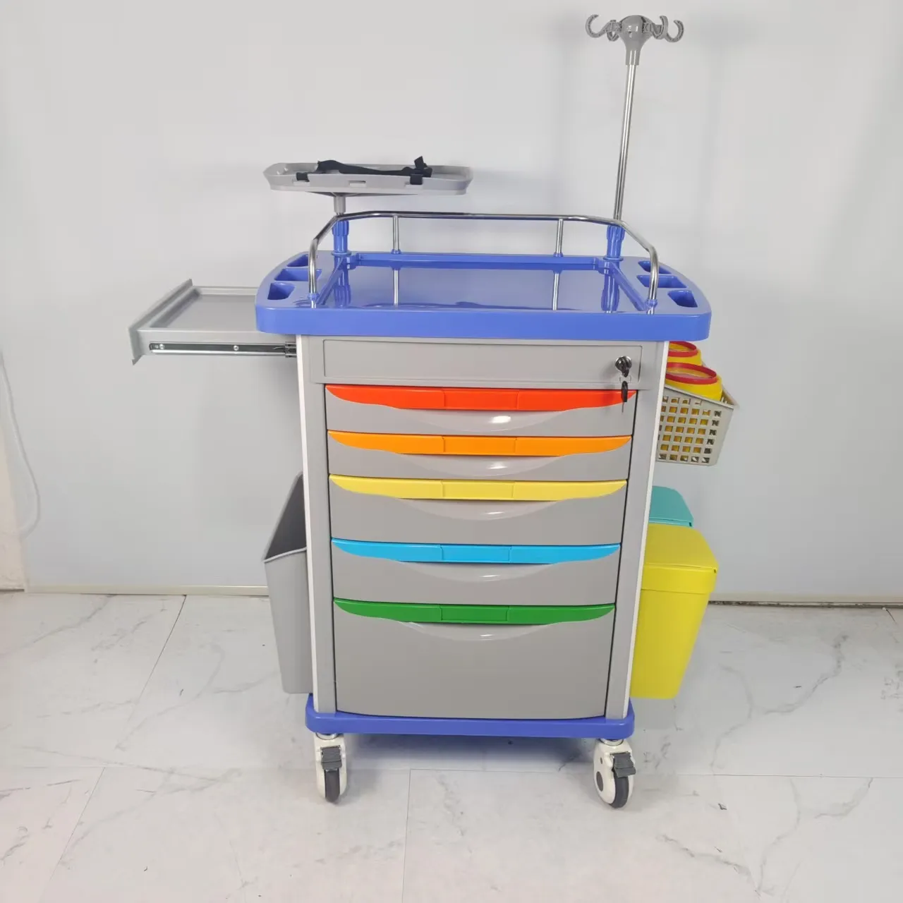 Located on the side of the cart, it is designed to extend the desktop area, save space and meet medical needs.