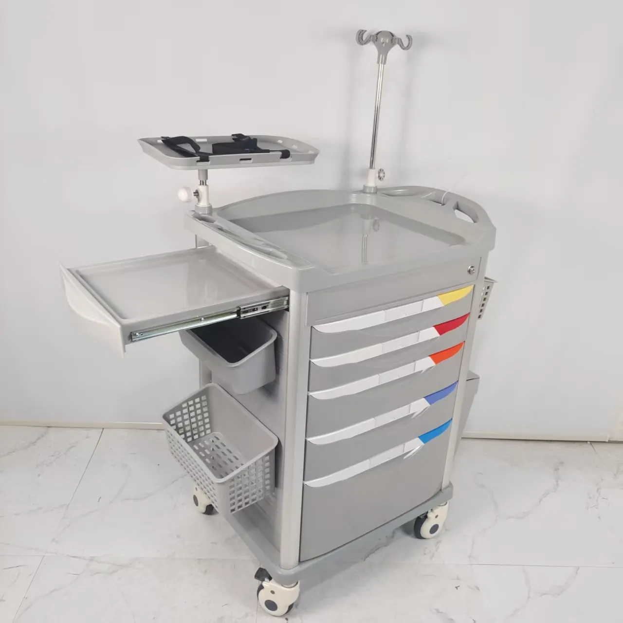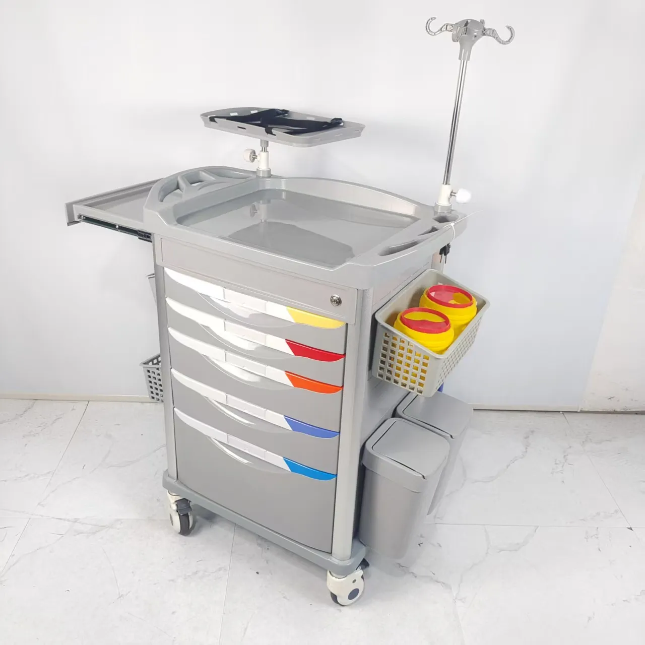 Modular configuration: Customizable layout, drawers, guardrails, IV pole mounting holes, and more to meet the needs of different departments (such as nursing, anesthesia, emergency, and dressing changes).