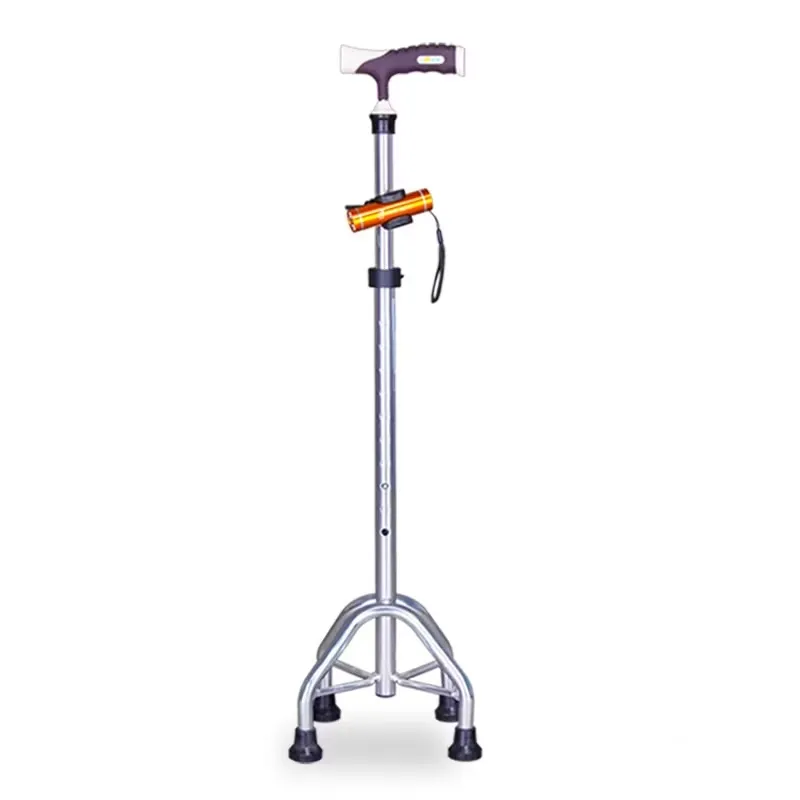 Multi-Function Portable Aluminum Adjustable Height Four Legs with Lighting Function Walking Stick Crutch