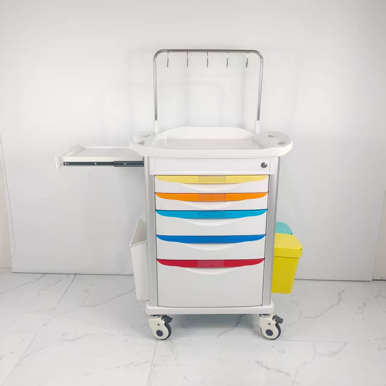 - Construction: The construction of the anesthesia cart is characterized by the implementation of four aluminum alloy metal columns as the main body of the frame, providing exceptional strength and impact resistance, which significantly reduces the likelihood of structural failure. Complementing this robust framework, the main shell components are constructed from ABS material, specifically chosen for its compatibility with disinfection processes, high-temperature resistance, and long-term durability within medical environments. Furthermore, the ABS material offers corrosion resistance, ensuring the longevity and reliability of the anesthesia cart in demanding healthcare settings, ultimately contributing to a safer and more efficient workflow for medical professionals.