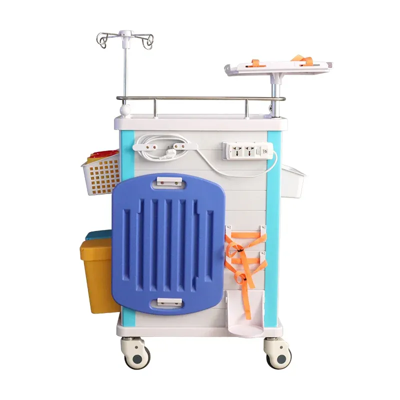 - Cực IV:Cột IV trên xe đẩy cấp cứu được thiết kế có thể gập lại, mang đến sự tiện lợi và gọn gàng khi cất giữ khi không sử dụng. Nó được trang bị bốn móc, cho phép dễ dàng gắn túi IV hoặc các thiết bị y tế khác. Cột IV có khả năng chịu trọng lượng lên tới 15kg, đảm bảo có thể đỡ được các thiết bị, vật dụng cần thiết cho việc điều trị qua đường tĩnh mạch. Thiết kế có thể gập lại không chỉ tiết kiệm không gian mà còn giúp vận chuyển xe cấp cứu dễ dàng mà không có nguy cơ cột IV vướng vào. Cấu trúc bền bỉ của cột IV đảm bảo sự ổn định và độ tin cậy, cho phép các chuyên gia chăm sóc sức khỏe tự tin thực hiện các phương pháp điều trị qua đường tĩnh mạch cho bệnh nhân trong các tình huống khẩn cấp.