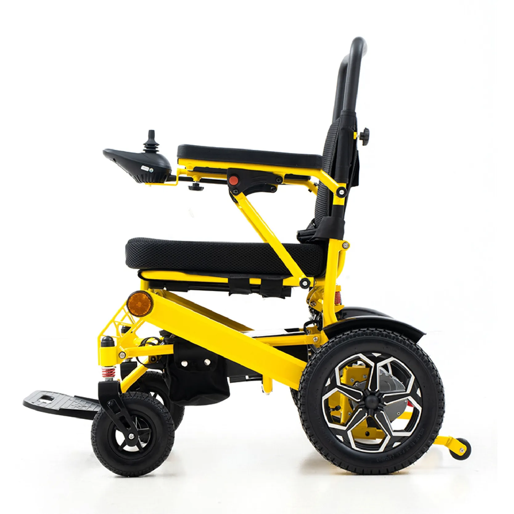 Một thiết kế thiết thực khác là xe lăn điện có cần điều khiển, cho phép người dùng di chuyển dễ dàng với cử động tay tối thiểu. Hệ thống điều khiển trực quan đảm bảo điều hướng mượt mà hơn qua hành lang, đường dốc hoặc mặt đất không bằng phẳng. Đối với các thành viên trong gia đình và người chăm sóc, tính năng này giúp đơn giản hóa việc hỗ trợ vì xe lăn cần ít nỗ lực thể chất hơn để đẩy hoặc hướng dẫn.