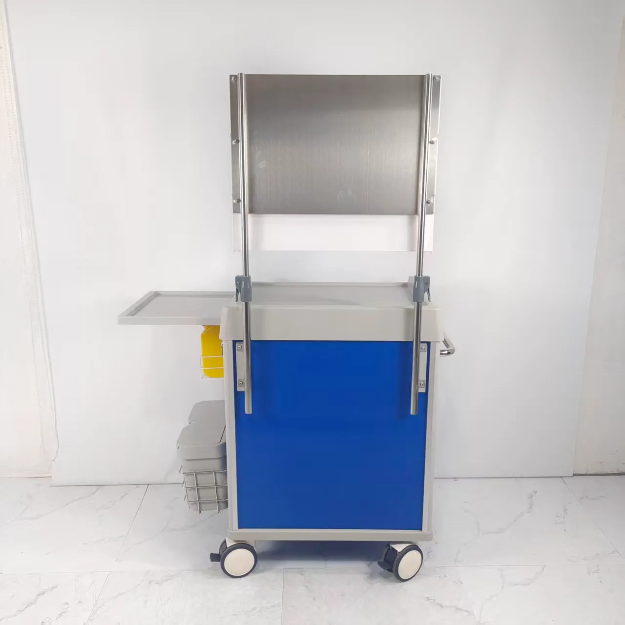 - Sự thi công: Cấu trúc của xe gây mê được đặc trưng bởi việc sử dụng bốn cột kim loại hợp kim nhôm làm thân chính của khung, mang lại độ bền và khả năng chống va đập đặc biệt, giúp giảm đáng kể khả năng hỏng hóc cấu trúc. Bổ sung cho khung chắc chắn này, các thành phần vỏ chính được chế tạo từ vật liệu ABS, được chọn đặc biệt để tương thích với các quy trình khử trùng, chịu nhiệt độ cao và độ bền lâu dài trong môi trường y tế. Hơn nữa, vật liệu ABS có khả năng chống ăn mòn, đảm bảo tuổi thọ và độ tin cậy của xe gây mê trong các môi trường chăm sóc sức khỏe đòi hỏi khắt khe, cuối cùng góp phần mang lại quy trình làm việc an toàn và hiệu quả hơn cho các chuyên gia y tế.